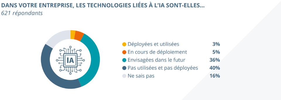 Cet intérêt varie toutefois fortement selon la taille des structures. Dans les entreprises de taille moyenne ou grande, un dirigeant sur deux envisage de recourir à l’IA dans les prochaines années. Dans les TPE, la proportion tombe à 29,7%.